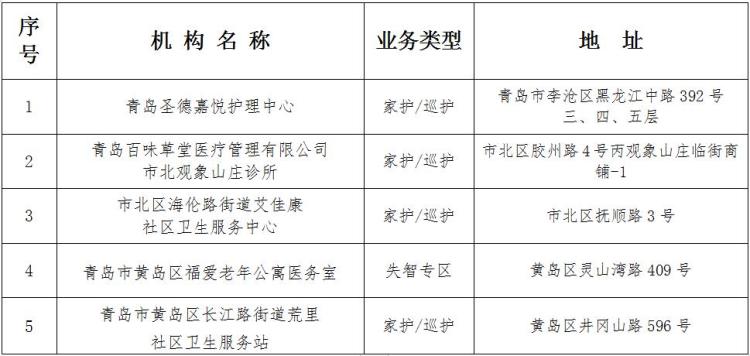 市医保局12月1日发布通知,根据《青岛市长期护理保险定点护理服务机构协议管理办法》(青医保规〔2019〕10号),经受理、核定和公示等程序,确定青岛圣德嘉悦护理中心等5家为青岛市长期护理保险定点护理服务机构。