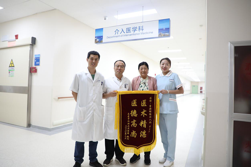 近日,患者管女士和儿子来到青岛滨海学院附属医院介入医学科,将一面写有“医术精湛 医德高尚”的锦旗送给医护人员。原来,管女士今年查出肝右叶长有巨大血管瘤,存在出血风险,需尽快手术。行肝血管瘤动脉栓塞术,对一般患者来说可能并不复杂。但管女士是聋哑人,医生与其交流起来并不顺畅。介入医学科负责人、主任医师杜亮,主治医师崔艳雷充分发挥以患者为中心的医院理念,以肢体语言与患者交流,克服重重困难,完成手术,术后患者恢复良好顺利出院。