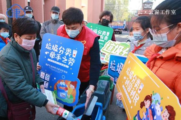12月1日,“发动红色引擎,共建绿色家园——践行《天津市生活垃圾管理条例》共建美丽品质社区和平夜话”垃圾分类现场展示会在和平区劝业场街南京路社区举行。