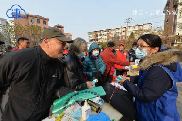 和平区南京路社区居民领取垃圾分类绿色环保垃圾袋。