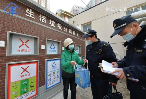 和平区南京路社区居民在专业指导下分投生活垃圾。
