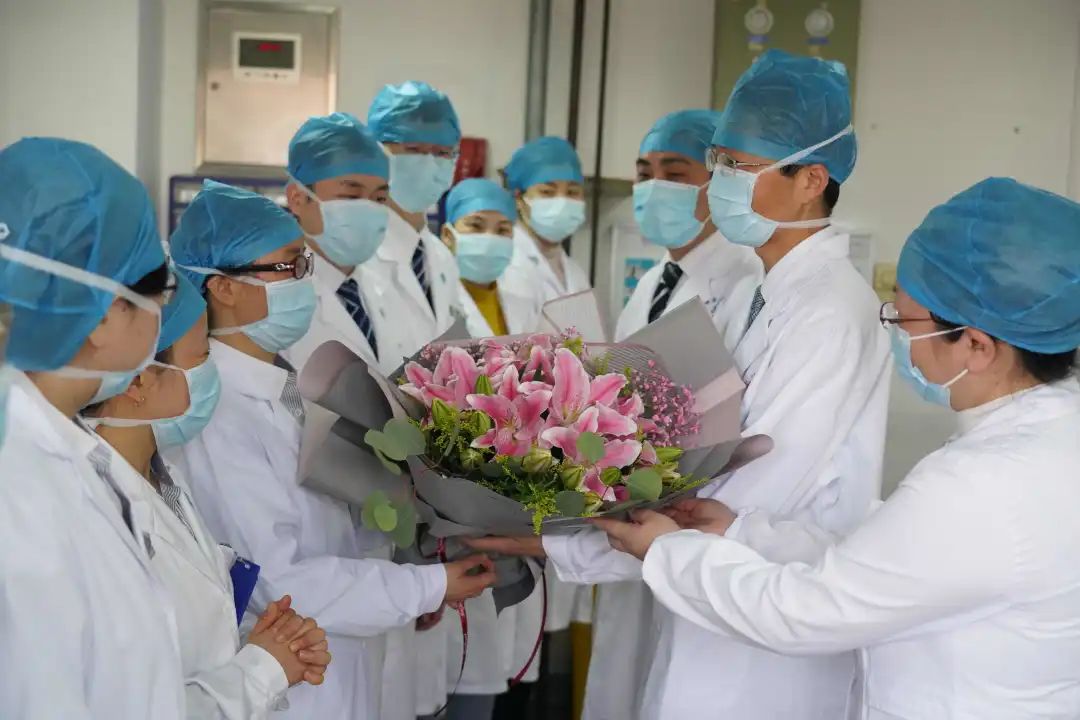 为了向医护人员表示感谢,公卫中心医务部门专程向白衣天使送上了鲜花。
