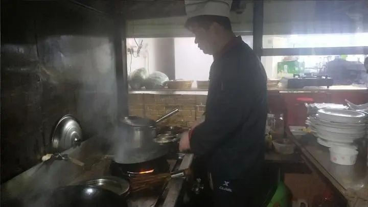 去安徽香辣馆吃饭,午餐、晚餐都要等翻桌,裴涛中晚餐一般都要烧30-40桌菜。