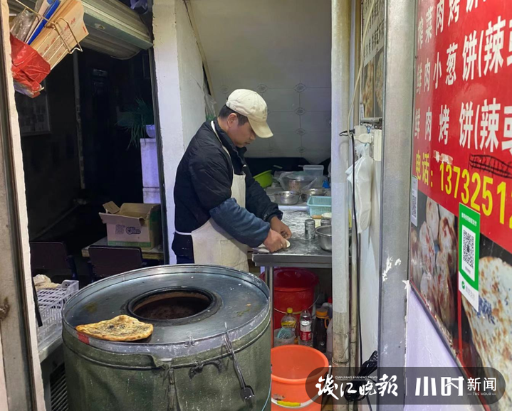厂房对面商铺的楼梯间,衢州来的张师傅,因为老婆在附近公司上班,去年在这里开了家烧饼店。
