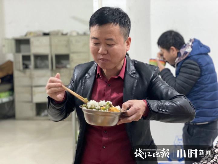 一荤一素,快速吃饭的10分钟,是一天中最放松的时刻,食堂师傅是江西老乡,烧的菜很对张金财胃口。