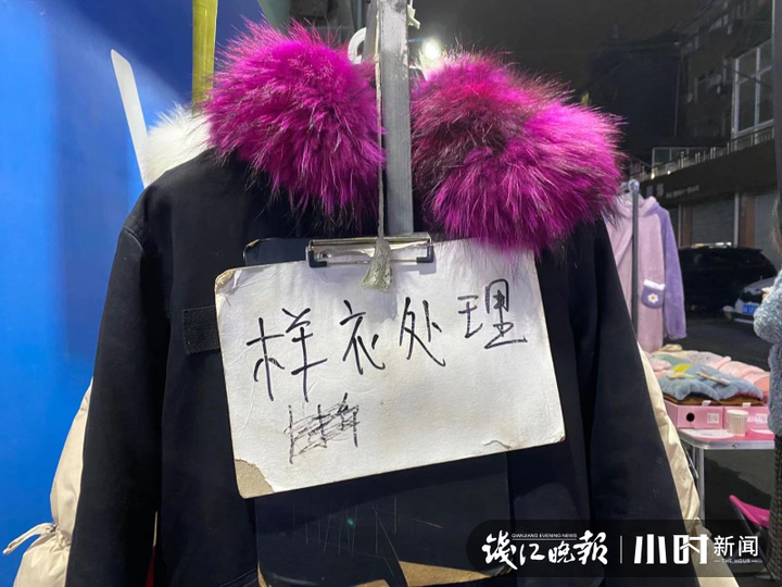 卖羽绒服的老吴是仓管员,他告诉小时新闻记者,今年工作室打样3000多件,卖出去2000件,仓库还有1000多件要处理,自己帮老板摆摊500元一天。