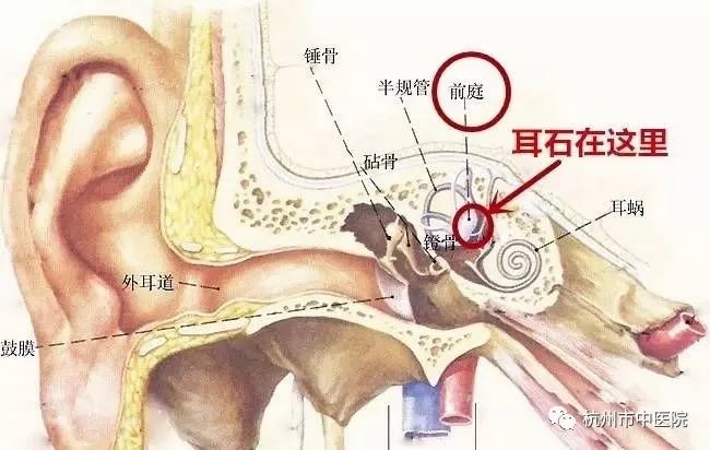 耳石,是控制人身体平衡的重要器官。正常情况下,耳石附着于耳石膜上,遇到外力打击脱落后则会在内耳内游动,从而让人产生眩晕感。