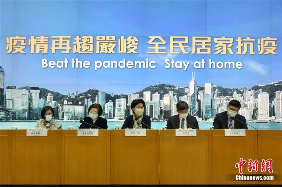 特首林郑月娥在政府总部会见传媒,宣布收紧防疫措施。中新社记者李志华 摄