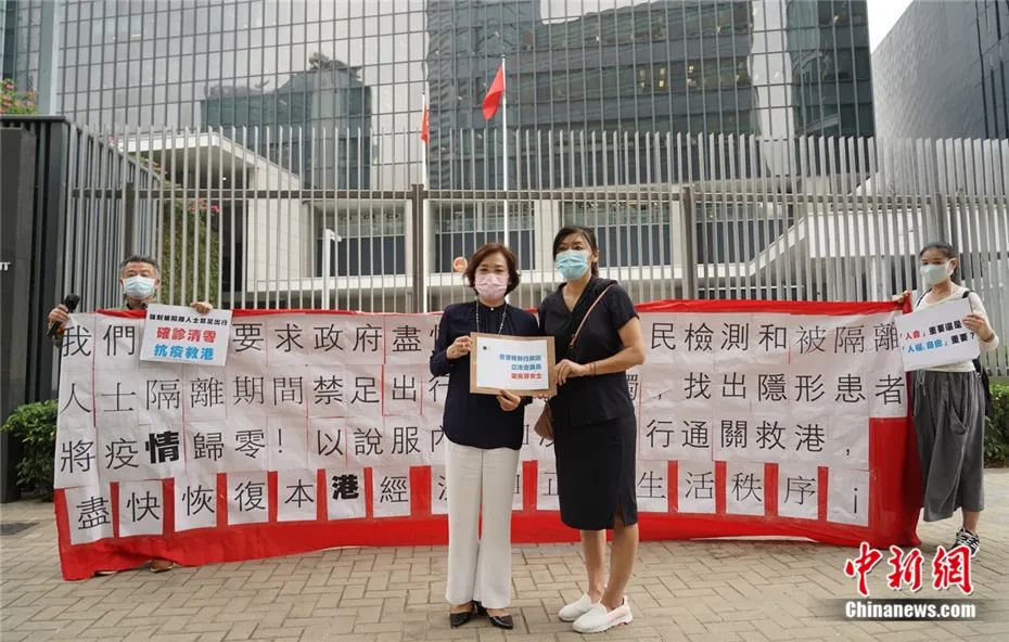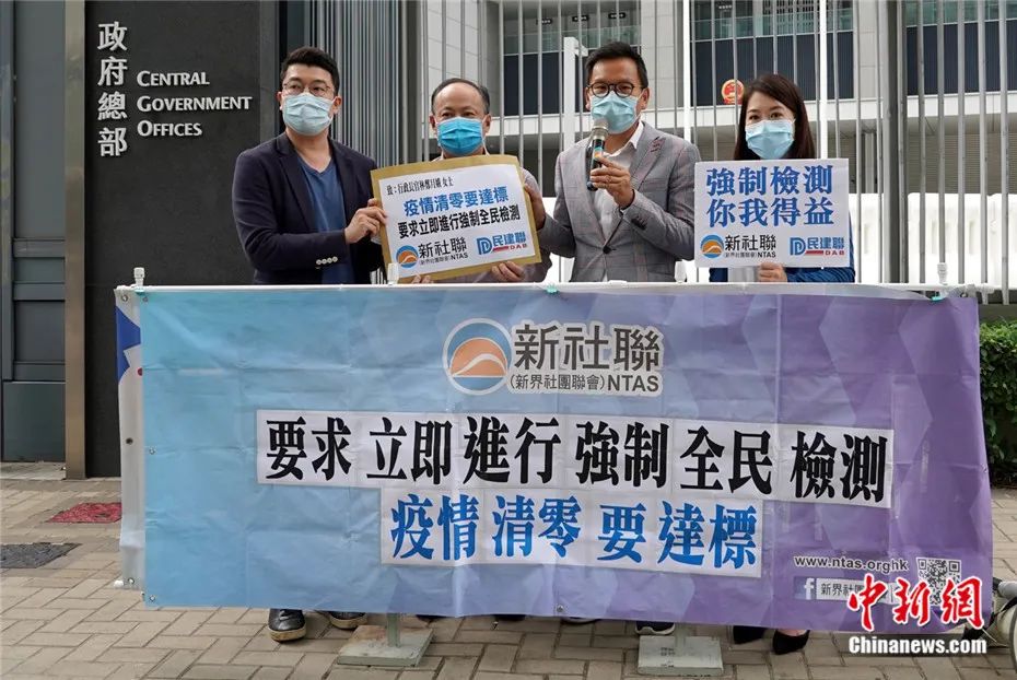 11月24日,香港新界社团联会在政府总部门前请愿,要求政府立即进行强制全民检测。中新社记者张炜 摄