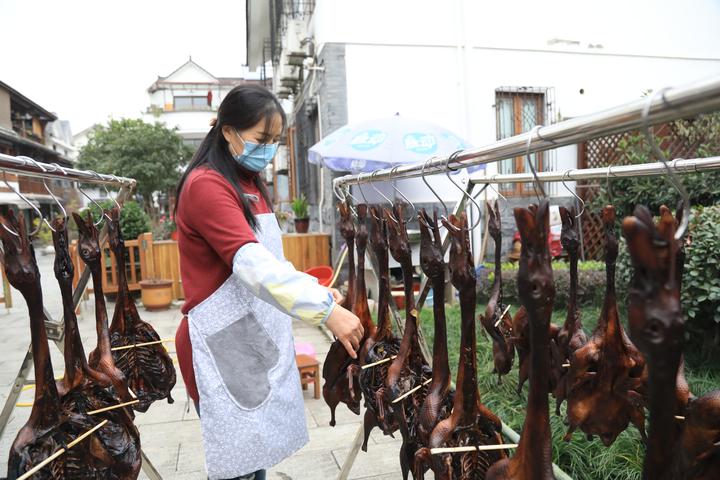 “我做酱鸭十七八年了,是开饭店后,和厨师学的手艺,经过慢慢摸索,不断精进制作技艺。刚开始,我只是做些酱鸭送给亲戚朋友,没想到大受欢迎,特别是青芝坞这边民宿的客人也问我买,这才大批量地制作起来。”甄阿姨介绍道。