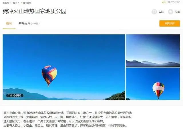 腾冲火山公园内现有97座火山体和数级熔岩台地,我国四大火山群之一,是探索火山地貌的最佳目的地。公园内有大空山、小空山、黑空山、柱状节理、墨鱼河等景点,还可乘坐热气球观赏,在高空俯视火山口,体验不同感觉。