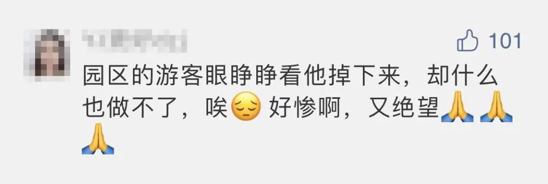吊篮里面没有人,只是这位工作人员收的时候来不及放手,被带到空中了,现在正在核实以及善后,我们相关的工作人员已经下去了,正在调查。游客已经疏散,还在等待处理。”