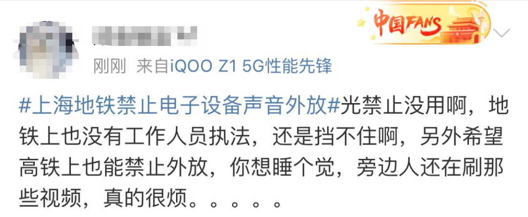 对于上海地铁“禁止手机外放”
