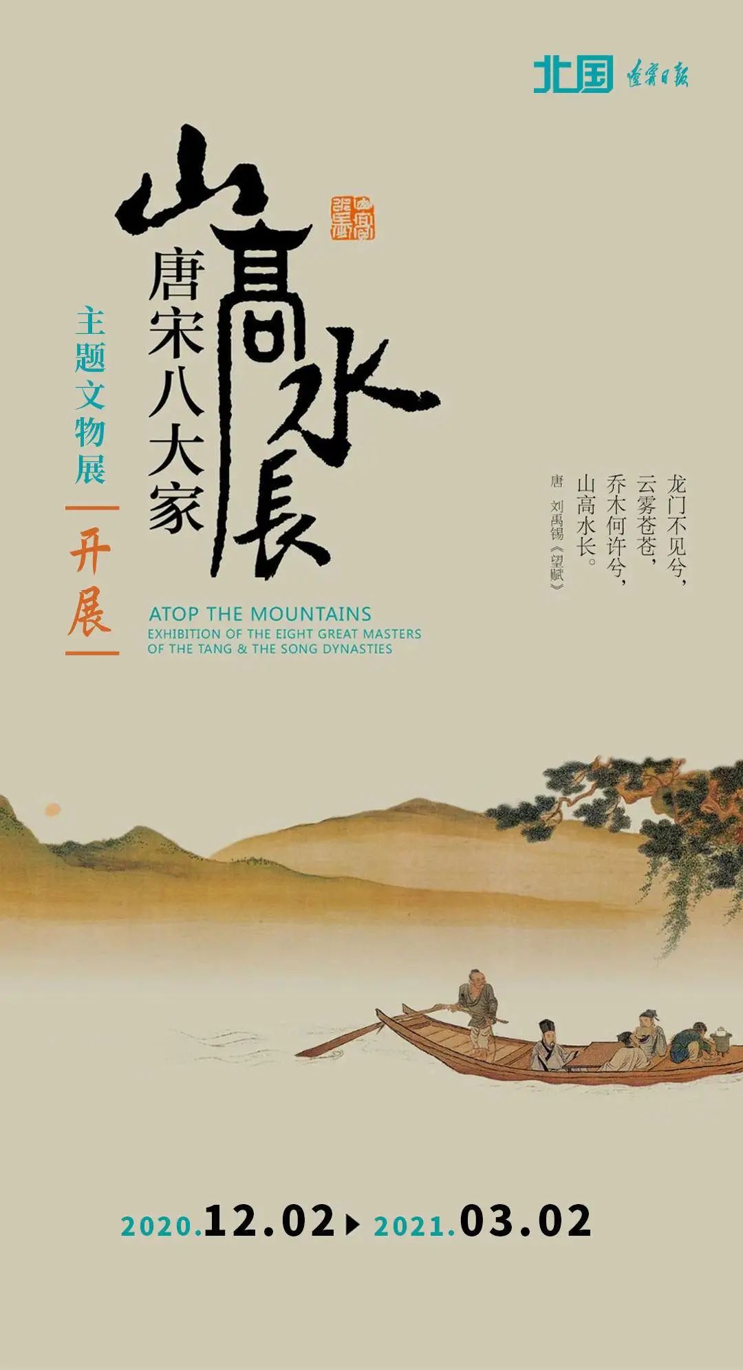 “山高水长——唐宋八大家主题文物展”将于明日(12月2日)上午9点30分开展,辽宁日报《北国》新闻客户端明天上午同步12小时直播——看八大家,全在北国。