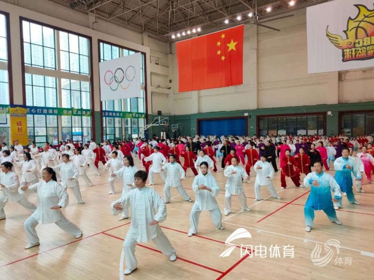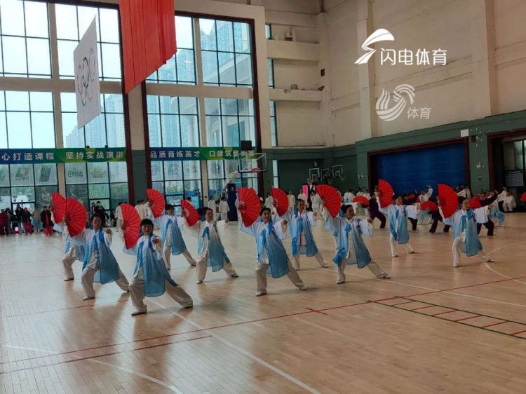 350余名中老年太极拳骨干伴着悠扬的音乐进行了太极八法五步、花样太极剑、花样24式太极拳等13个太极拳(剑)节目的展示,精彩的展示赢得了在场领导的齐声赞扬。