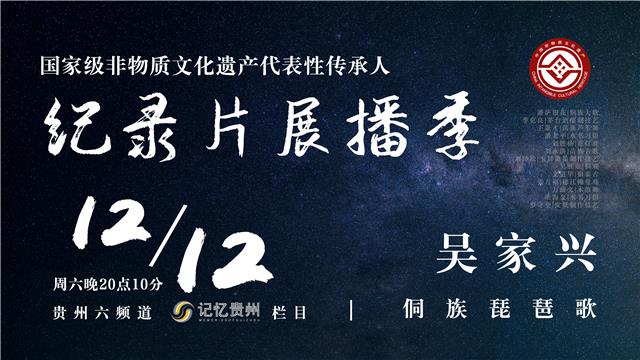 下周六晚8点10分,《记忆贵州》栏目将播出“国家级非物质文化遗产代表性传承人”纪录片展播季第八集《侗族琵琶歌国家级传承人——吴家兴》,敬请收看!
