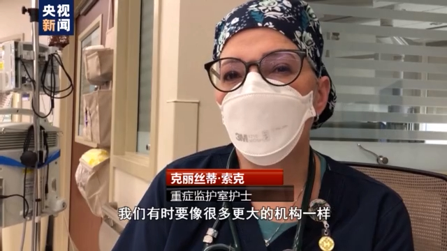 重症监护室护士 克丽丝蒂·索克:我们有时要像很多更大的机构一样,需要照顾同样多的病人,但是我们人手比他们少,所以有时人手不足对我们来说是个困难,许多人需要加班。