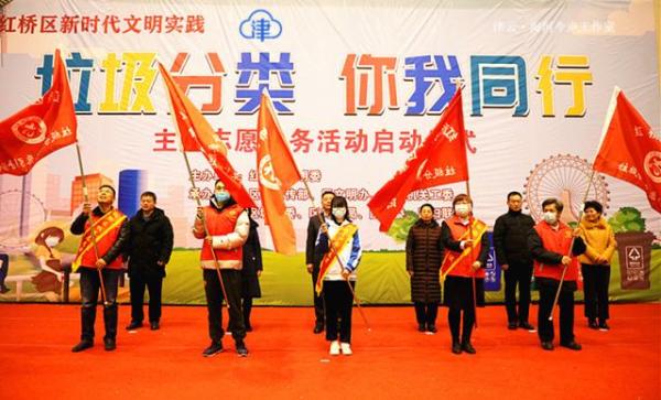 “垃圾分类,重在全民参与,胜在持之以恒。建议每一名市民都从自身做起,从小事做起,从现在做起,积极践行垃圾分类,为创建文明城区贡献力量。”日前,在红桥区新时代文明实践——“垃圾分类 你我同行”主题志愿服务活动启动仪式现场,67岁的天津市劳动模范、优秀志愿者马芳菲发出的倡议获得大家的广泛认同。活动现场,文明家庭、文明单位、机关企事业单位、社区、青少年代表做出“带动身边更多人主动参与垃圾分类”的承诺。