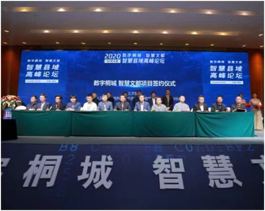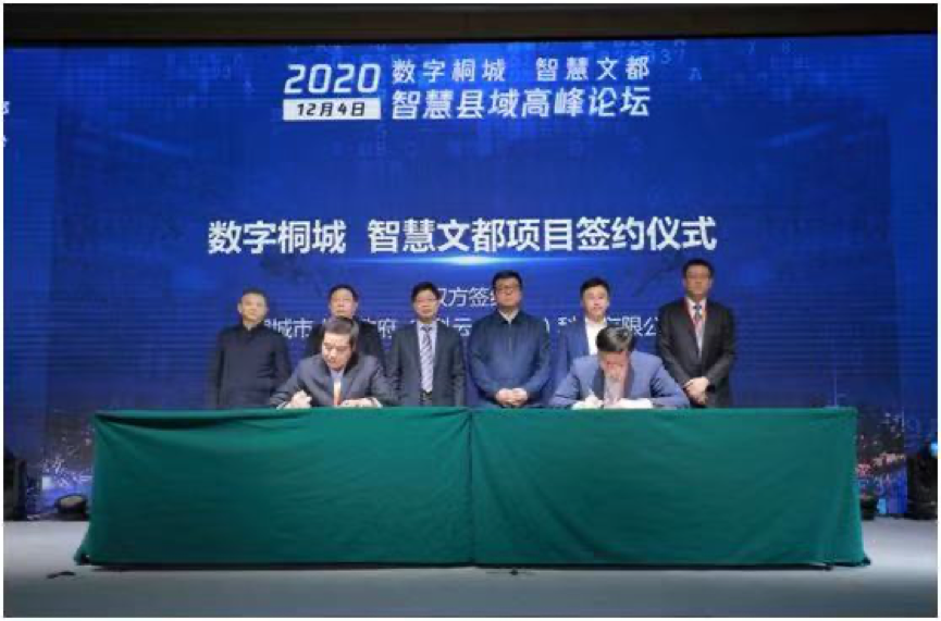 会上,桐城市政府与中国电科云公司签署项目合作协议,并举行了“数字桐城、智慧文都”揭牌、启动仪式及项目生态合作伙伴三方签约仪式。