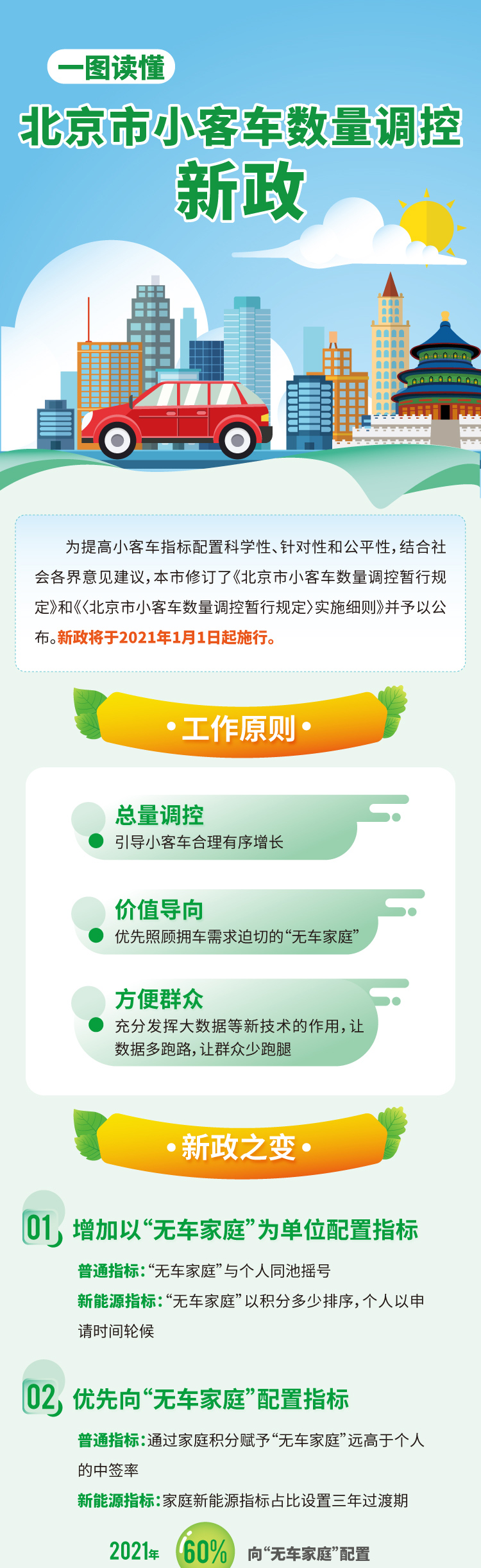 今天(7日),《北京市小客车数量调控暂行规定》和《实施细则》正式公布。增加以“家庭”为单位的摇号新规,同时提出,推动个人名下第二辆及以上的小客车有序退出。新政将于2021年1月1日起正式实施。