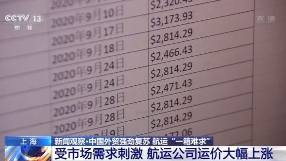 东方国际创业股份有限公司第五业务部经理 何巍:现在我们能够拿到一个箱子的成本差不多比往常要翻一倍左右 成衣行业是一个比较低利润的行业 运价这一块涨100% 对我们压力非常大 原来可能微利的东西 可能现在会仅仅是保本 或者甚至略微亏损一点