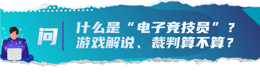 答:在此次制定的“电子竞技员”国家职业技能标准中给出这样的解读:“电子竞技员”职业是围绕利用电子设备通过网络进行竞技及表演这一核心活动,开展传统体育模拟类、益智类、军事类、即时战略类、卡牌对抗类、动作类等电子竞技项目的比赛、表演、陪练、裁判、运动指导、数据分析、健康管理、活动直播、解说评论、项目开发等业务的系列工种及岗位。