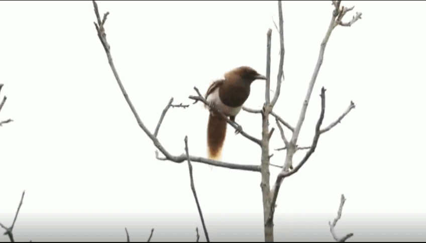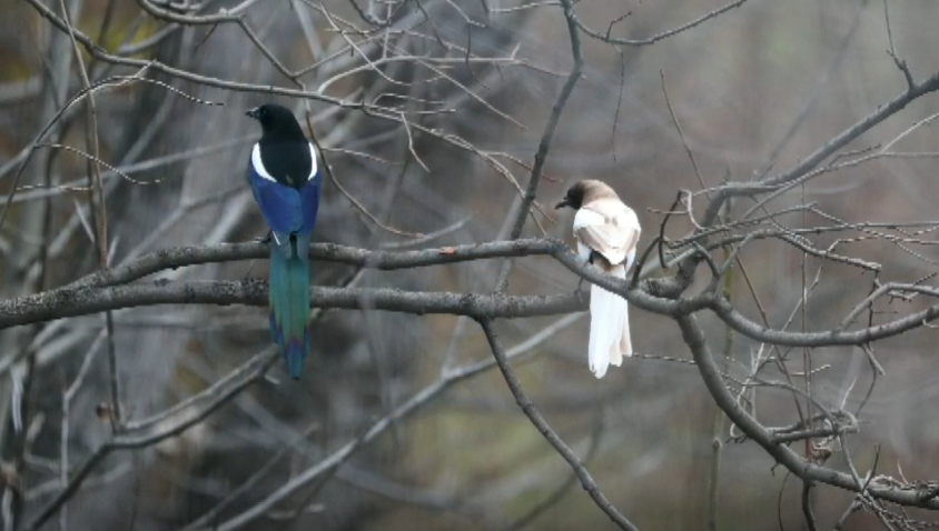 近日,记者在陕西商州丹江源国家湿地公园麻街段发现一只羽色呈黄褐色的喜鹊。经专家辨认,这是一只基因突变导致羽色变异的成年喜鹊,在自然界十分罕见。
