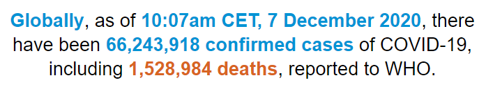 世卫组织:全球新冠肺炎确诊病例超过6624万例