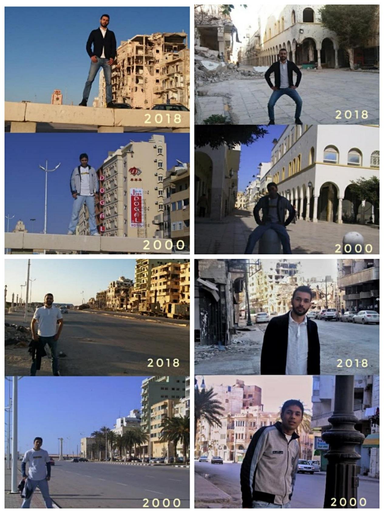 △网上流传的一组非常著名的照片。一位利比亚青年将自己在利比亚多地相隔18年拍摄的照片成组晒出,引发了众多亲历这场利比亚之变的人们的唏嘘和感慨。当你细看照片上标注的年份数字时,你是否也能体会这份希望时光还能倒流的哀伤?