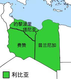 △利比亚1951年独立前,其所辖三地的黎波里塔尼亚(现的黎波里为中心的西部地区)、昔兰尼加(现班加西为中心的东部地区)和费赞(现南部地区)基本上是自成一体,各自为政的情况。