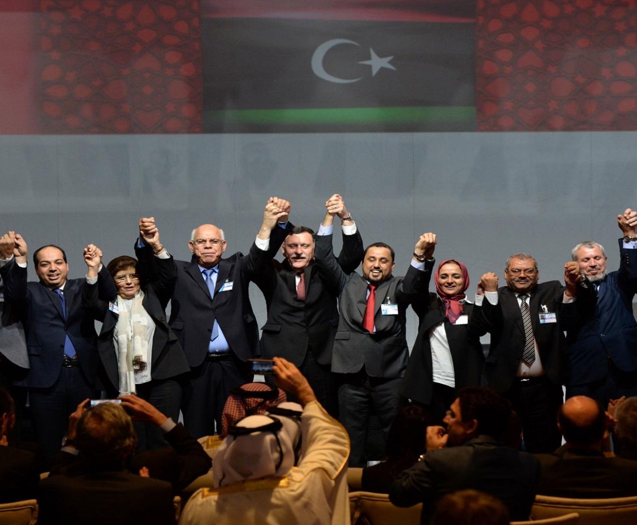 △2015年12月17日,利冲突双方代表在《利比亚政治协议》签署后于会场握手致意。时任联合国利比亚问题特别代表马丁·科布勒表示,协议的签署“开启了利比亚历史新篇章”。