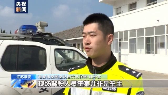 淮安市交警支队四大队民警 陈子文:现场驾驶人员王某并非是车主 他本身是汽贸公司的工作人员 是在开车为这个车主办理行驶证的过程当中发生的交通事故 并且我们调查发现 该车辆上所放置的临时号牌已经过期。