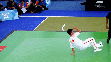 2018年青奥会上,霹雳舞设置男单、女单、男女混合等项目,运动员在比赛中Battle对决,逐轮晋级,并产生最后的冠军。