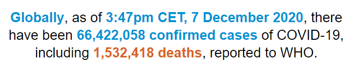 世卫组织:全球新冠肺炎确诊病例超过6642万例