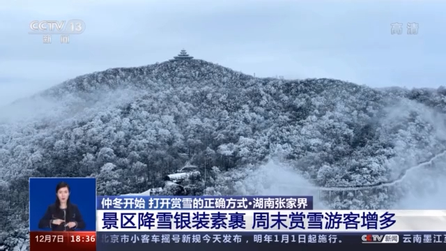 一雪一景一世界,接下来就跟随我们的镜头去打开正确的赏雪方式。近几天,湖南张家界出现持续降雪,天门山国家森林公园变成银装素裹的冰雪世界。从空中俯瞰,被冰雪覆盖的森林公园仿佛一幅泼墨山水画。远山白雪交相辉映,群峰被冰雪点缀,更显巍峨壮观。