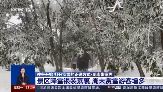 漫步林间,雪凇漫山,千姿百态,放眼望去犹如千树万树梨花开,整个景区壮美无限。雪后的美景令赏雪游客增多,仅周末两天,天门山国家森林公园接待游客就超过1.5万人,比冬季平时翻了三番。