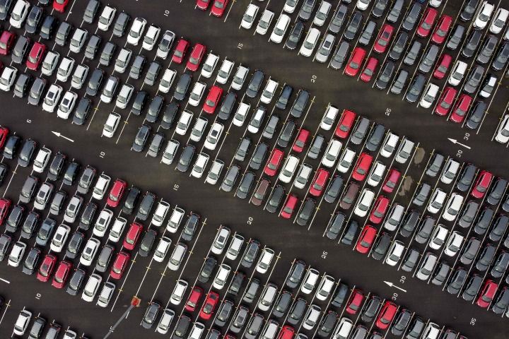 这是12月4日在英国埃文茅斯航拍的进口汽车。新华社/法新