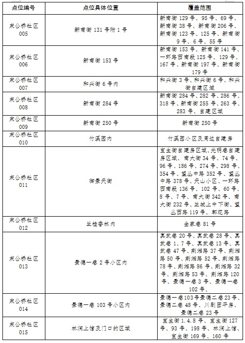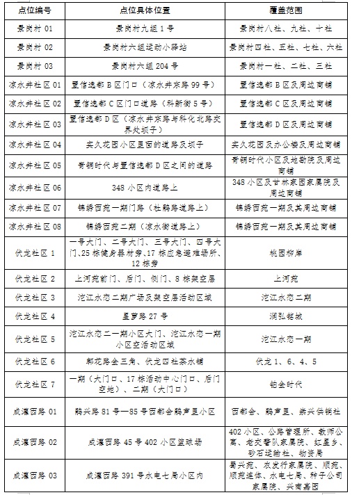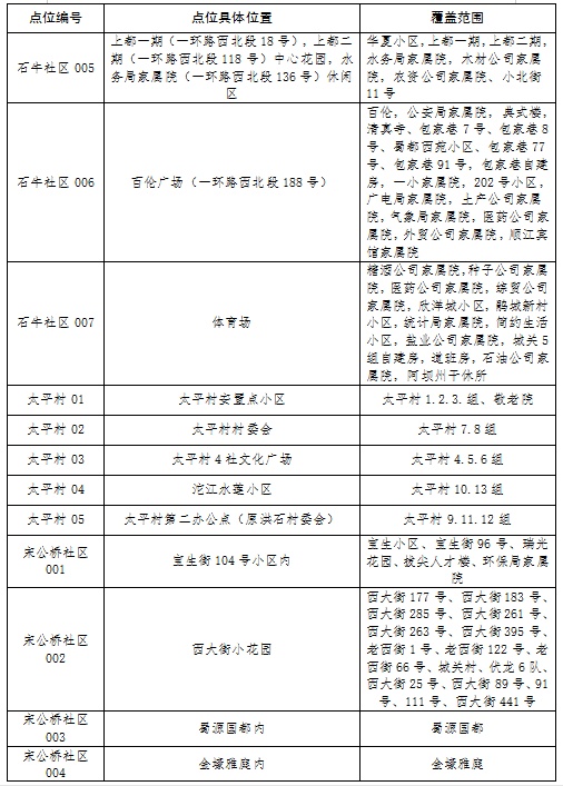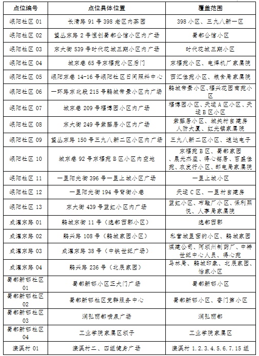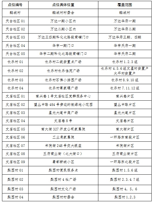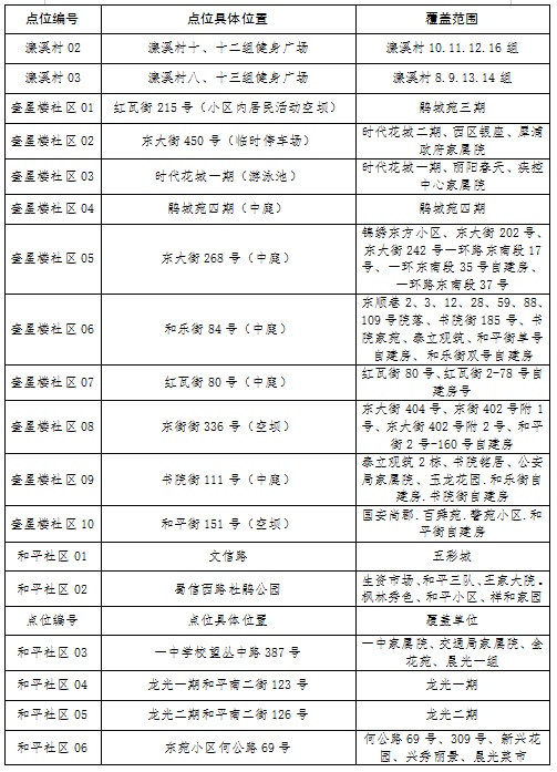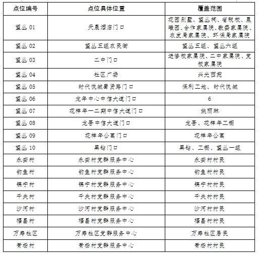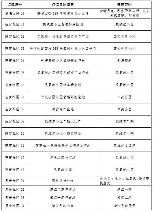 新冠肺炎疫情防控核酸检测点位分布表