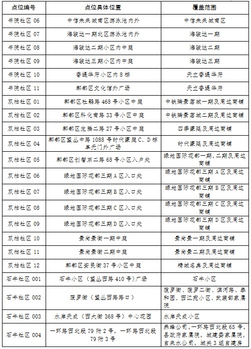 郫筒街道设置175个核酸检测点,唐昌镇原唐元片区设置8个核酸检测点,详见附表。