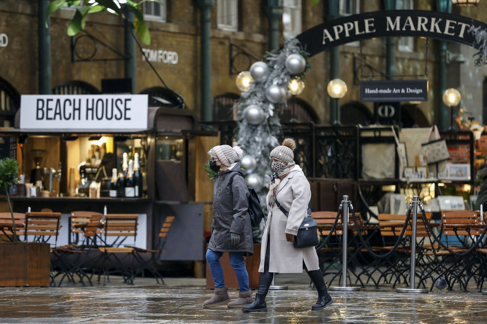 2020年12月4日,戴着口罩的人们走在英国伦敦考文特花园的市场。新华社记者 韩岩 摄