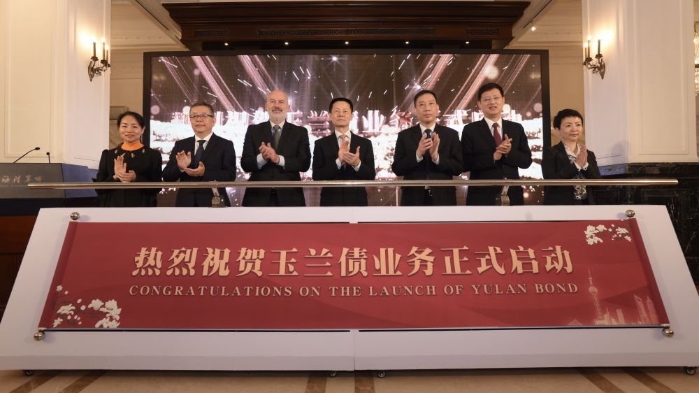 图为上海清算所和欧洲清算银行正式启动“玉兰债”业务