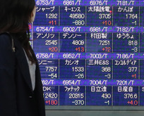 图为近日一位行人经过日本东京街头一处电子股指显示屏