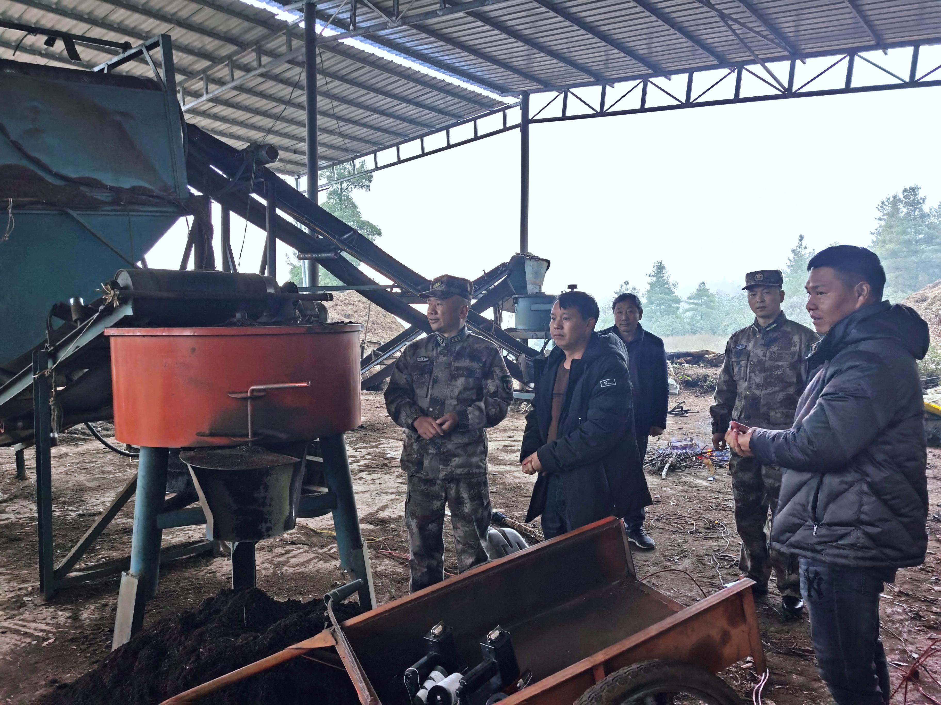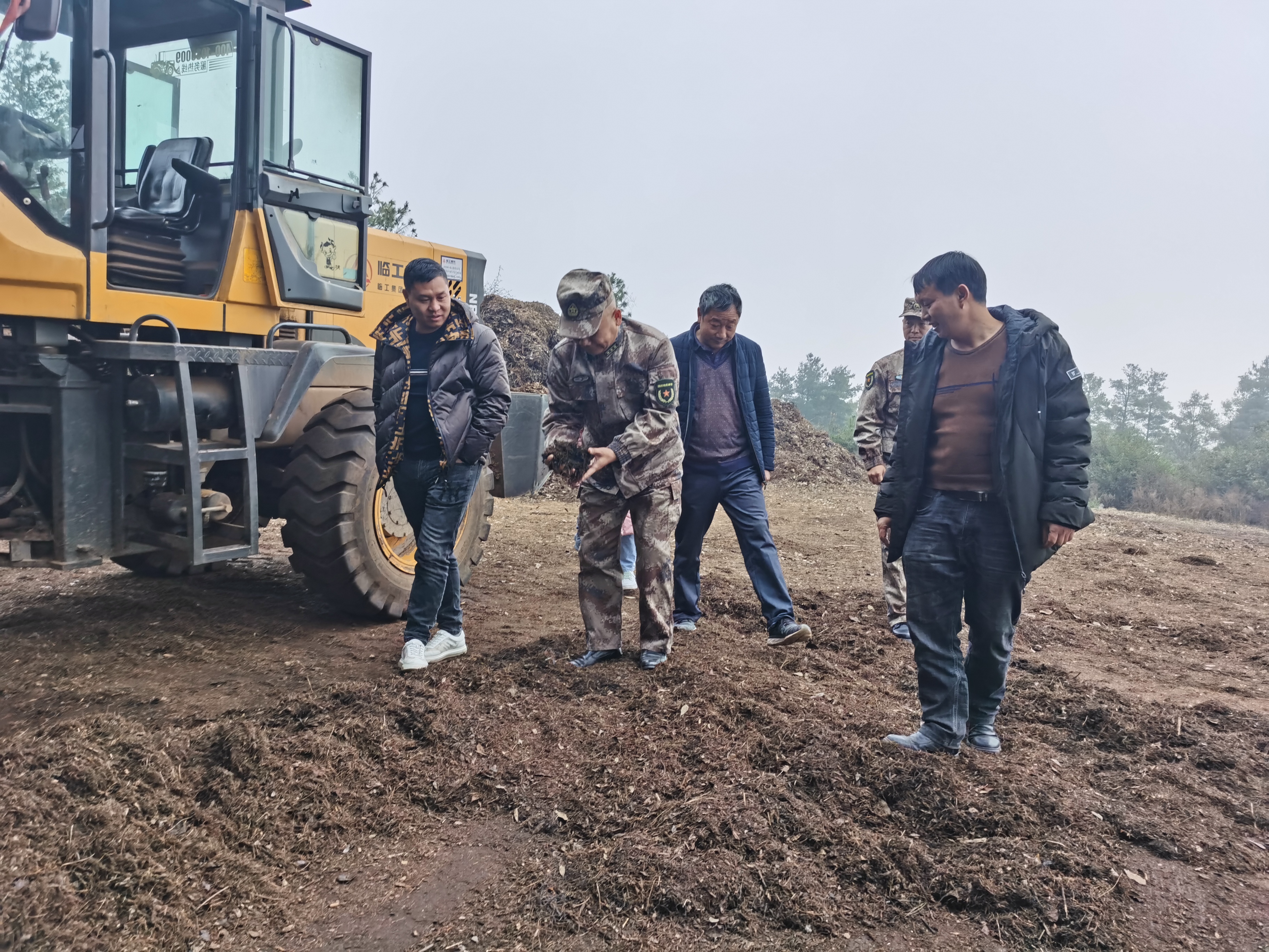 麒麟区人武部政委杨刚在检查腐叶肥生产过程。代英 摄