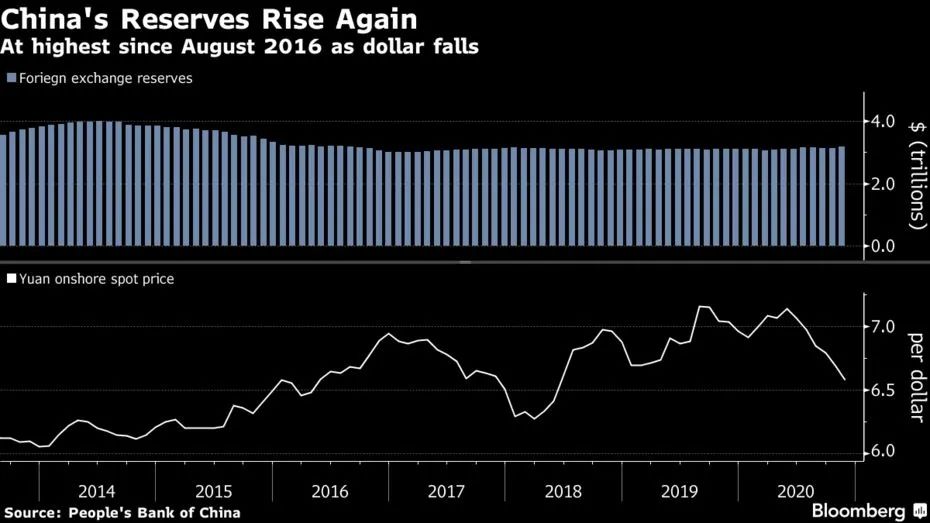 贸易繁荣和人民币的表现确保中国外汇储备上升