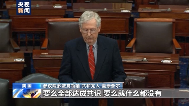 美国参议院多数党领袖 共和党人 麦康奈尔:他们(民主党人)的策略就是,要么全部达成共识,要么就什么都没有。
