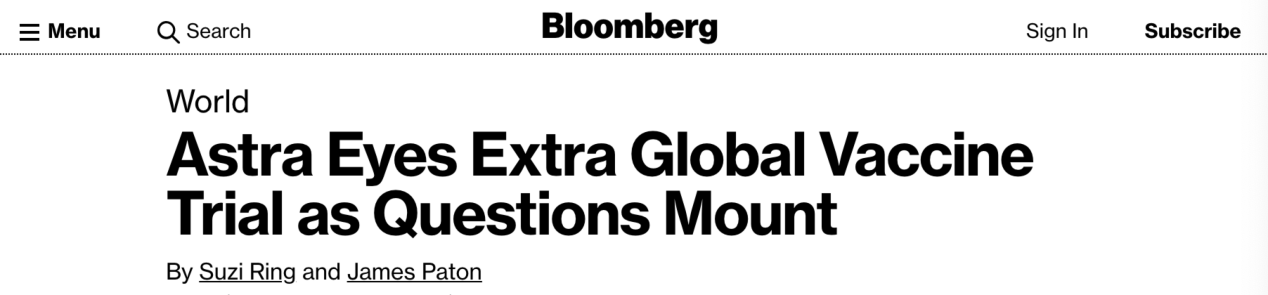 △彭博社报道:成堆问题下,阿斯利康将进行一轮额外的疫苗试验