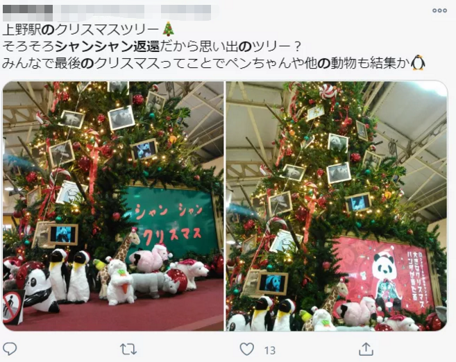 网友:上野车站是因为“香香”就要被送返中国所以树上挂满了关于“香香”的回忆吗?