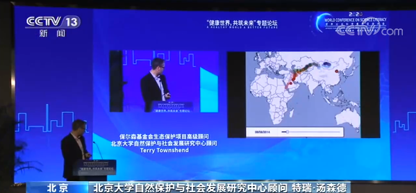 大会共设置五场专题论坛与一场CGTN电视论坛,在“健康世界,共筑未来”专题论坛上,英国环保专家“鸟人”特瑞·汤森德针对生物多样性挑战,他分享了北京雨燕的故事,堪称“英雄探险家”的北京雨燕每年4月抵达北京,7月离开,但人们并不知道它在何处过冬。运用科技手段追踪,科学家们揭开了它们南飞的目的地,并展开对应的生态区域保护。