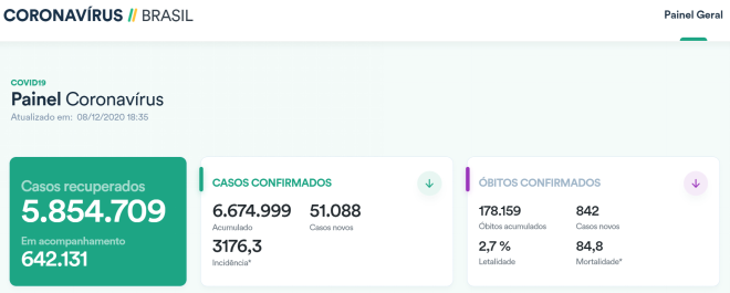 截至当地时间12月8日,巴西单日新增51088例新冠肺炎确诊病例,累计确诊6674999例,新增死亡病例842例,累计死亡178159人,累计治愈人数为5854709人。