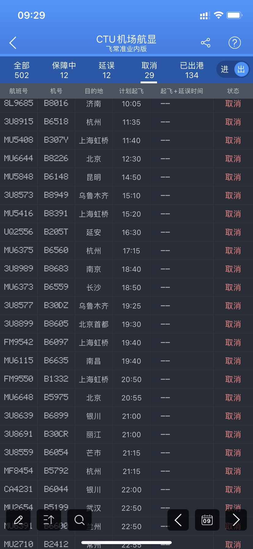 据统计,今天双流机场计划出港航班502个,计划进港航班512个。截至上午9时30分,取消进、出港航班共59个。旅客若需了解具体航班信息,可拨打双流机场热线028-85205555,或与所乘航班的航空公司联系。